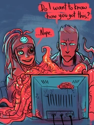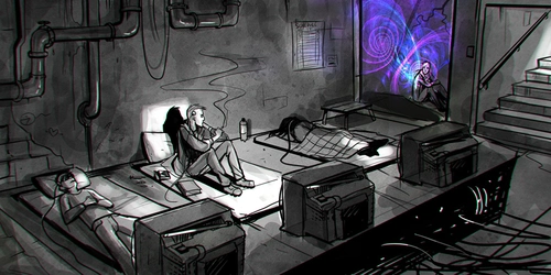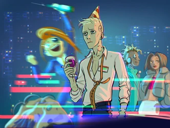 A prominent player in the local VR scene, Dan had to retire after suffering worm-induced brain damage. Nowadays, he spends his time working shitty jobs, struggling to adapt to reality, and occasionally hanging out with his friendly neighborhood modder, Lin.