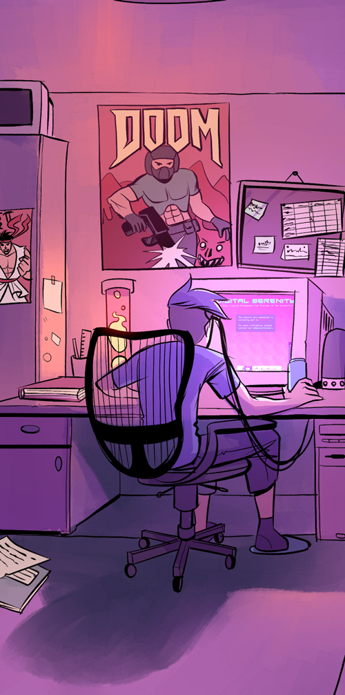 AKA Cybernator. One of the sharpest (and cockiest) operators on the scene, which is no mean feat when you haven’t even hit legal drinking age yet. Thanks to indulgent parents and the wonders of mail order, Nate is neck-deep in the latest, shiniest tech, some of which might even work as advertised.
